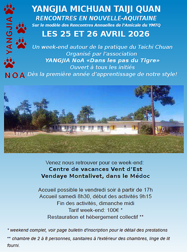 25 et 26/04/2026 : Yangjia Michan Taiji Quan